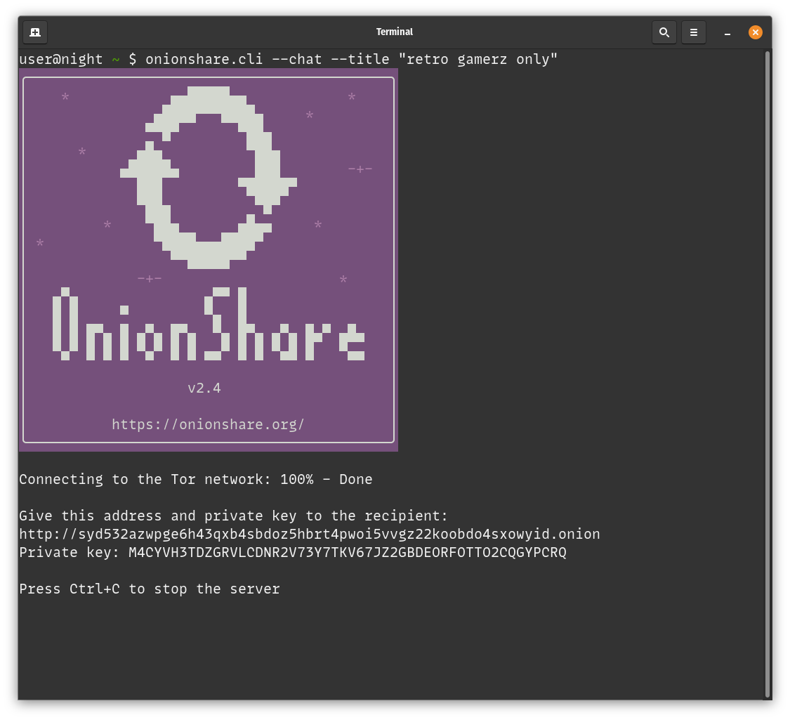 Today though, the passwords are gone! OnionShare 2.4 addresses look something like this: