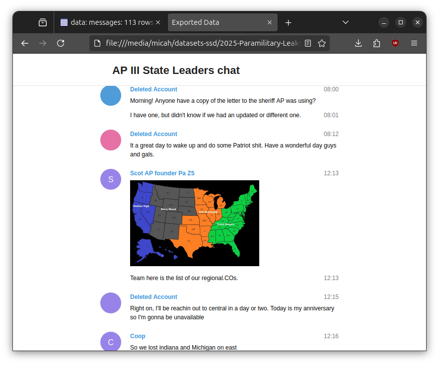 Welcome to the second installment of my series on the Paramilitary Leaks! In case you missed it, the first installment is here: Exploring the Paramilitary Leaks. Since I published that, several people reached out offering to help. We now have a private Signal group of researchers working on this together, and a git repository of our code so far β much of the code was written by people who are not me, which I'm very excited about. It makes the research go so much faster, and it means this is a real collaboration.