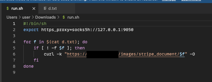 Oh and those unredacted (I did the redaction above) photos of gov issued IDs? The hacker included the script they used to download them all using curl, over Tor, without any authentication.