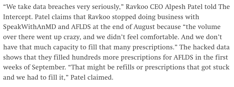 A network of right-wing healthcare providers, lead by @drsimonegold and America's Frontline Doctors, is making millions of dollars off of hydroxychloroquine and ivermectin, data provided to The Intercept by an anonymous hacker reveals https://theintercept.com/2021/09/28/covid-telehealth-hydroxychloroquine-ivermectin-hacked/